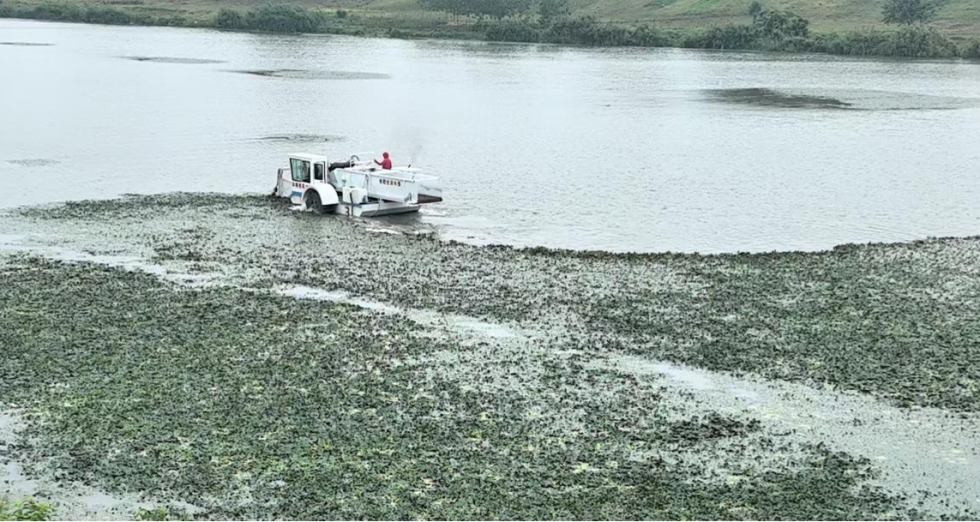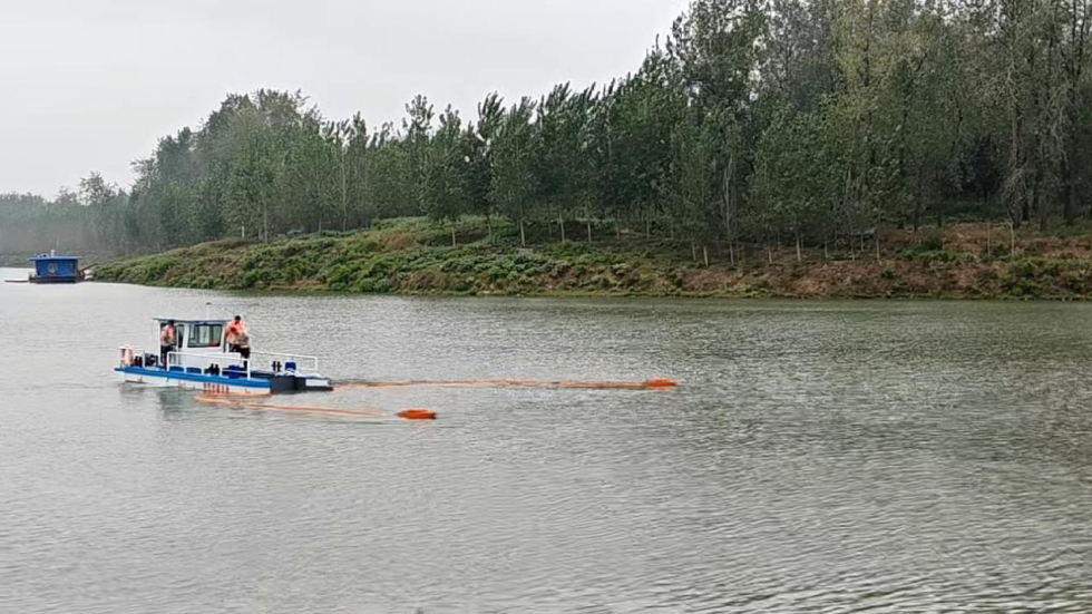 清理现场,两款“神器”格外惹人注目。全自动割草船作为水域清洁的“主力”,配备智能切割装置,可根据水草生长情况自动调节切割深度与速度,避免伤及鱼虾等水下生物,船舱单次载重达4吨,大大提高了清理效率。多功能水面清理长臂船是打捞蓝藻的“利器”,可遥控机械长臂能灵活覆盖不同水域,打破传统作业半径限制,收集臂与吸藻泵协同运作实现蓝藻精准捕捉,经藻水分离系统处理后形成藻泥,便于转运处理。