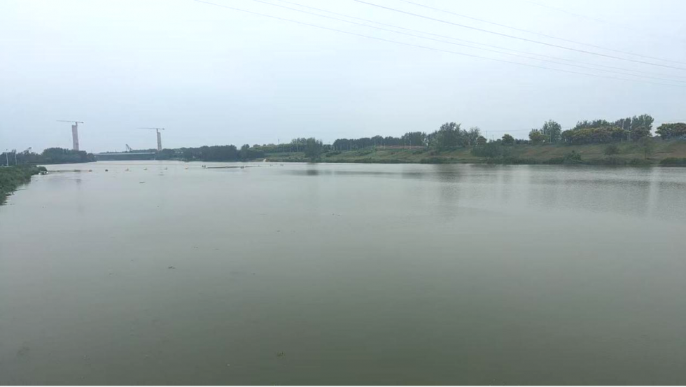 (全自动割草船在泉河七渔河排涝泵站附近作业)