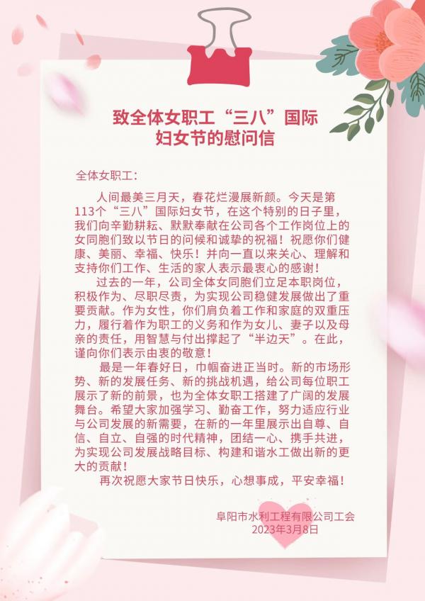 致全体女职工“三八”国际妇女节的慰问信